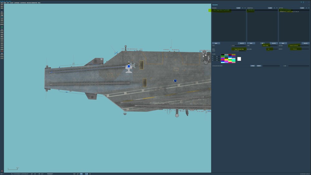 This is how I would set it up... and of course you can amend the time to suit your mission needs. The Tanker will start moving within a few second of spawning so keep that in mind when working out your times. (message in the trigger is optional - I was just testing) Hope this helps. Top - Late activation Setup Bottom - Trigger setup Middle pic just shows the Tanker spawned. Sorry they aren't in the right order