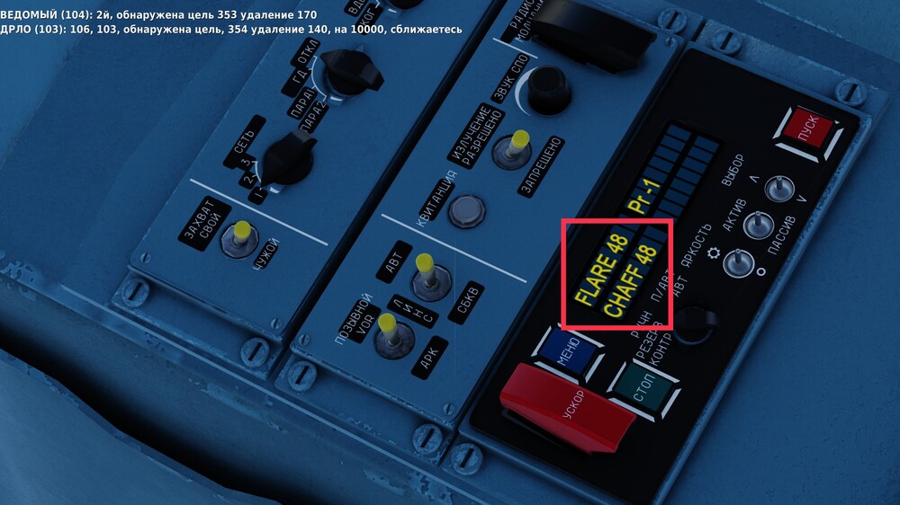 On the panel of the countermeasures programmer, in my opinion, the number of flares and chaffs is incorrectly displayed. Here is the total number. But, since they shoot in pairs, the number on the screen should be half that. Namely: not 96, but 48.