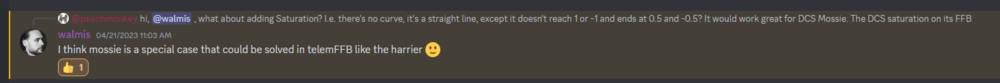 see if you can nudge walmis on rhino discord to take a look at it as well. I pinged him about it last week, he mentioned that he'll try to test the mossie with rhino to fully grasp the problem, so far it's just me bugging him about it, if you add your voice maybe he'll do it sooner. He was trying to see if he can modify the received telemetry and re-inject it into the stream using his app telemFFB. null null
