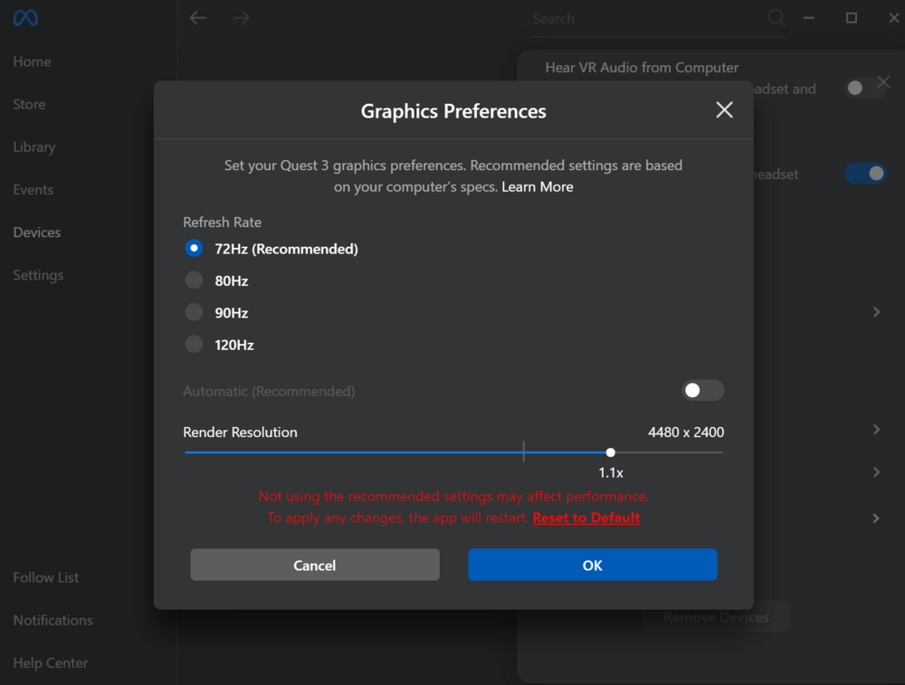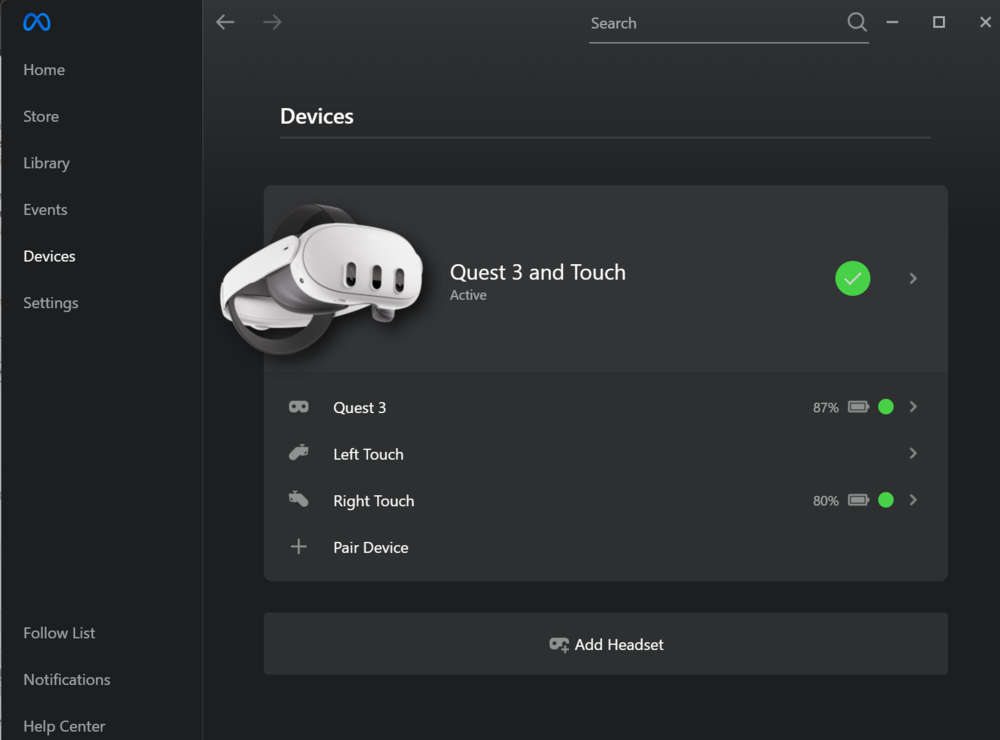 My wifi router isn't good enough (Yet) for a wireless connection. I do have virtual desktop, but I'm using a cabled connection with the Q3. Based on this site, there might be a conflict between Oculus software and Openxr. I have some more reading to do on this. https://communityforums.atmeta.com/t5/OpenXR-Development/Quest-3-v-68-conflict-with-Open-XR-Toolkit/td-p/1223282