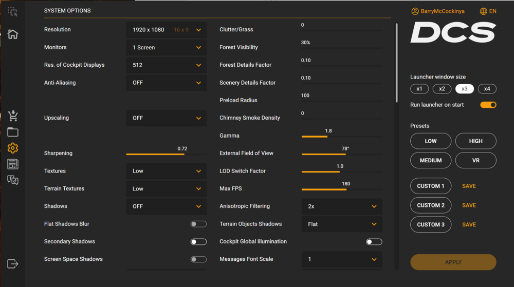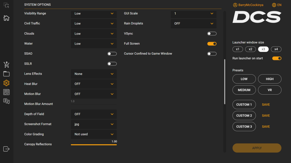 nullDialed all graphics down to the lowest setting, same issue. Total system freeze for about 5 mins. It doesn't seem like graphics settings are the issue here.nullnullnullnull DxDiag.txt dcs.log.old