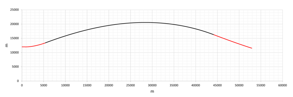 Attempt to reconstruct this case, very low launcing velocity, fair altitude and very high distance to target. If it's true, number in circle present seconds till impact, so 100 seconds which is very long travel. I have no clue where is target on altitude and how fast it is so let's consider it to be same. Several options: 1) levelled flight 1G overload plus 3G reserve 2) initial lofting maneuver and ballistic trajectory but keeping 3G reserve Both of these cases are pointless, not even close to reach target 3) initial lofting maneuver, then ballistic trajectory without any overload and/or reserve and at the end gliding with 1G overload with included 3G reserve Only this thrid case can bring rocket that far and also to have at least some velocity at the end Approximately 67 seconds of passive flying object, with locked fins in zero position, with no lift force whatsoever. I have no clue could it be case, it is completly differnet approach compared to other Russian rockets, I mean on absence of this overload reserve. But only this way I manged to drag rocket that far