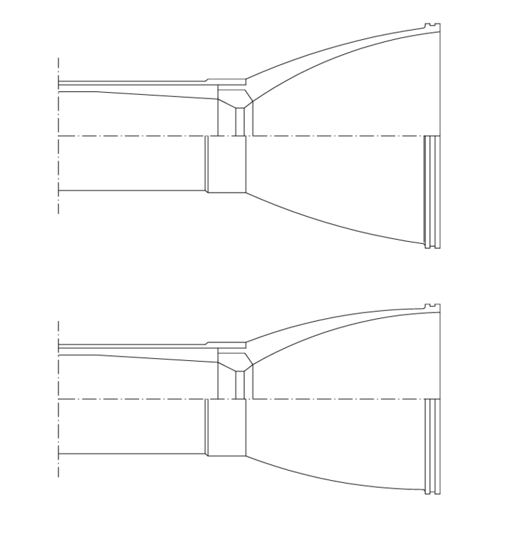 This is the best rear view of R-77-1 that I found, and to be in some normal focus to allow taking measuremets. Seems like throat in R-77-1 could be a bit more tight, diameter of seal (сопловая заглушка) from this photo is something about 50mm Seal can be installed in various ways -> but I think this last one (bottom one) is the most likely how it is fixed in nozzle. That means that throat is more likely 40mm what is kind of less then in R-77, and exit diameter is something like 148mm what makes initial expansion ratio 13,7 and that is in range of R-77. But 40mm throat diameter could result that this motor works differently, propellant must be with lower burning rate, otherwise motor would blow out Slower burning -> longer burning Total impulse is still in range, about 14300 kgs at sea level and 15500 at 10km And this longer burning motor gives very nice push in lofting -> It would be nice if there is some video which can give clue how long motor burns, but I haven't managed to find some