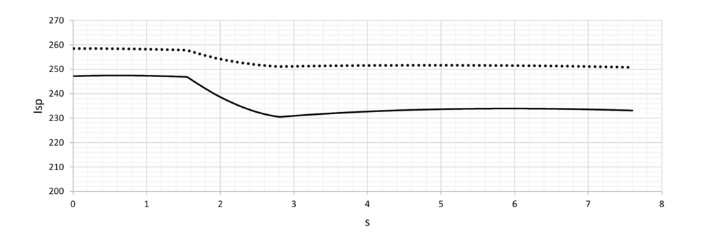 Don’t forget these values in most cases are given for ratio 69:1 bar or 1000:14,5 in psi. Chamber pressure vs ambient pressure, with full expansion of gases, and without losses in divergent zone of nozzle Same as Russian motors and propellants, only in ratio 40:1 which is Russian standard