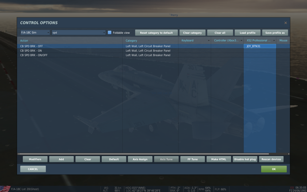 Hi ace pilots, I wanted to tell that the F-18 Hornet speed brake has a bug. When the speed brake on the Hornet is extended, it can no longer be retracted. I have tried every button config (OFF, Retract/OFF, and retract bound to STRG+B or to various of my HOTAS buttons) but the speed brake does not respond anymore after releasing, and stays fully or half extended. Please fix this bug because I need the speed brake at all landings. I wish you a wonderful christmas time, kind regards JetCat