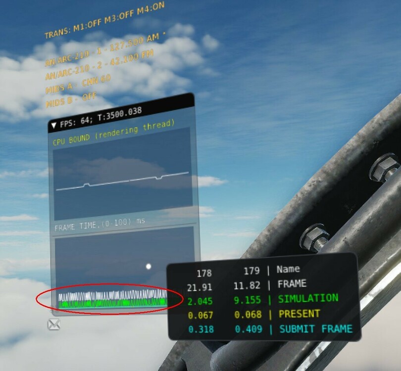 Hi, just wanted to get opinions if this looks ok or not. I don't really have any issues, but wondering if the constant oscillating of the frame and simulation lines looks right or if it should be a straight line. The frame time seems to jump between 11 and 20 really fast. Thanks! System: i7 14th OCed to 5.6 64GB RAM OCed to 6400 (2x32 sticks) 3080ti proc affinity FFFF STKDirty