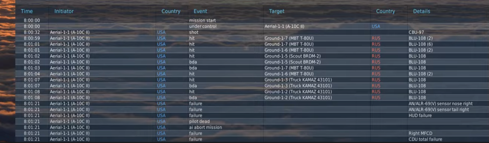 doesnt the bda "kill" only show up once its dead?`otherwise its just "hit" in your log in the end, Ground Unit 1-7 only died after the 9th you have 2 hits, then another 6, then one, only then the "bda" shows up. prior to that its just "hit"