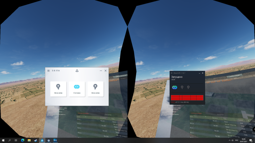 Вот скрин,если что-то скажет он,это заход на сервер,не успел даже ЛА выбрать,в шлеме просто зависла надпись DCS загрузка и меню выбора ЛА и всё,на мониторе дублируется изображение что всё норм,движения отслеживаются