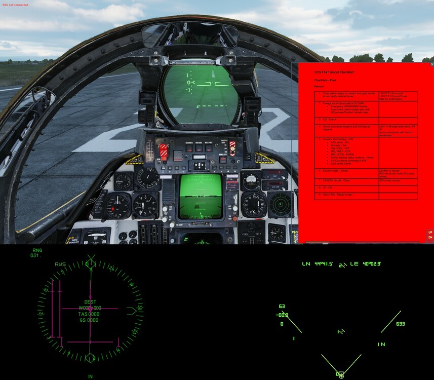 Main Game/Mods/Aircraft/F14/Cockpit/Scripts/ControlsIndicator/ControlsIndicator_page.lua The background transparency line is 45, make them all 0 in the { } brackets, the position line is 67, I edited mine as above from {0,-(1 - 1.5*totalSizeX)}, there are several lines for colour, I just edited wherever it said texture_lightgreen (except line 3 which I left alone) and replaced with texture_red (there are 8 instances in the file) -