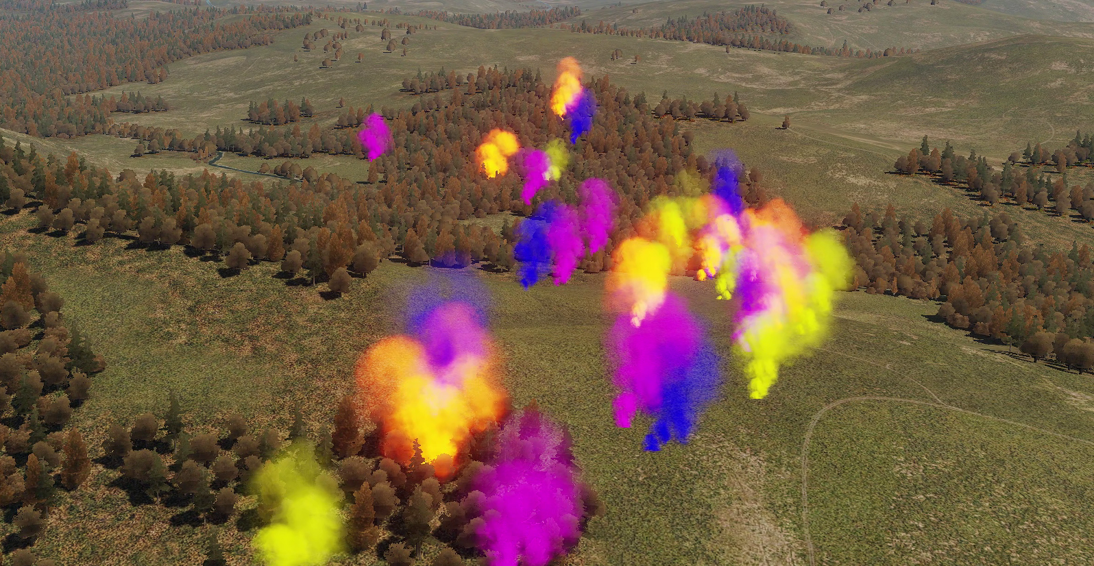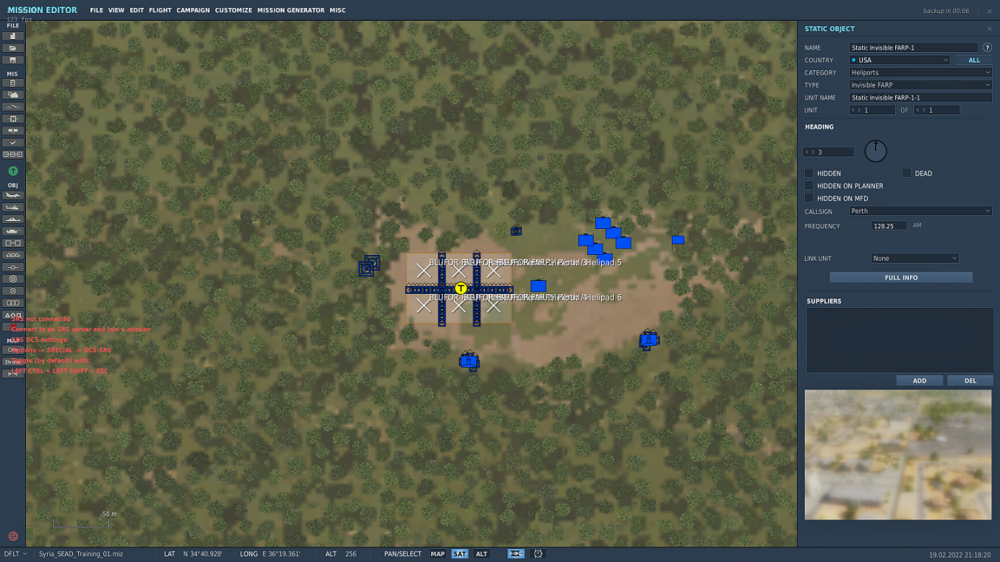 It became ever so clear to me that invisible FARPs by-design remove trees/objects around them without an option to turn this off. In my attempts to create a sort of "hidden" FARP in a forest I've also found out that in doing so the invisible FARP entry decides to clear entire chunks of the forest without much care for range or shape. Please improve how the tree/object removal is being done, or better yet make it optional for entities that do so in a hardcoded fashion. I'd love to make use of invisible FARPs, but simply cannot in this case. I've attached a small test mission for you to try and reproduce this yourself. The following screenshot is the result when I run it on my machine (smoke = FARP): LumberjackFARP.miz