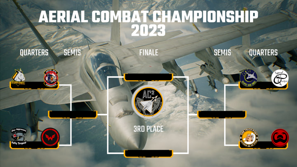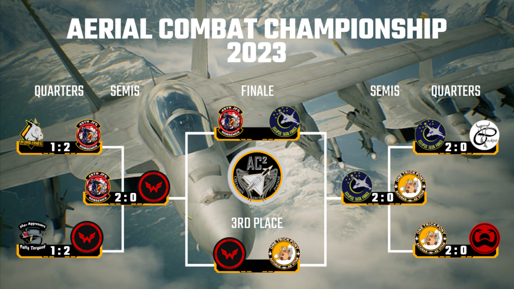 THE FINALISTS HAVE BEEN DETERMINED!!! 45th JFG Horsemen (45th) will take on Eclipse Task Force (E-TF) to become the 2023 AERIAL COMBAT CHAMPIONS Team Wadafak (WF) and One Trick Pony (oTp) will compete for 3rd place. JOIN THE DISCORD TO BE NOTIFIED WHEN THE MATCH WILL BE STREAMED -> Discord Invite Link <- See you there! Ash out