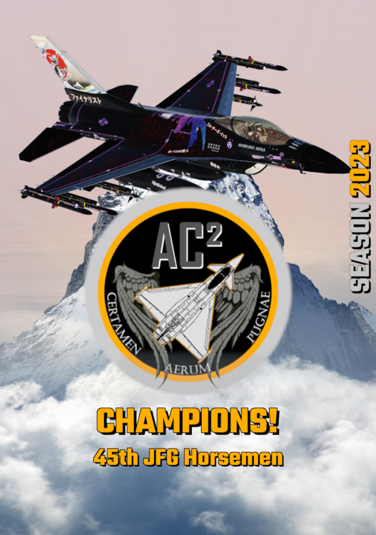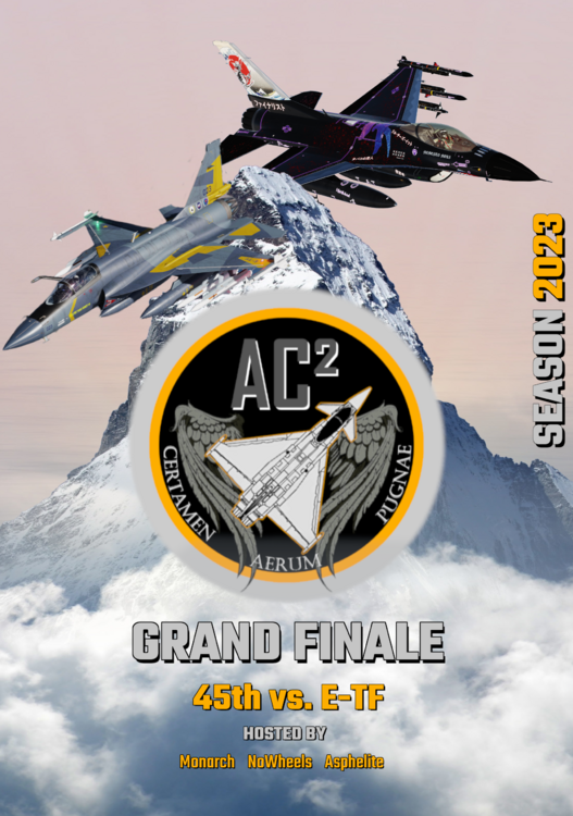 THE DAY HAS COME!!! Tonight, at exactly 1800zulu, the 45th JFG Horsemen and Eclipse Task Force will take on each other to become the AERIAL COMBAT CHAMPIONS of the 2023 season! Both have been fighting all the way up the ladder, meaning theres only one last fight to determine who is the best of the best of ACC. Since this is the finale, I've been trying to gather some of the BEST streamers of the DCS Competitive Space to host the finale stream - with RL always being a factor, not everyone was able to make it, sadly. But "not everyone" has to mean someone, right? That's why I will be hosting the finale together with my good friend Monarch and the legendary NoWheels himself! We will also see the premiere of a community submitted Finale Trailer during the stream, so stay hyped for that and a big thanks to the 343ku and especially starry_fox_nine for going out of their way to make a cinematic on their own behalf! We will launch the stream at around 1745zulu, so be sure to tune in over at my Twitch Channel! (Link) This is gonna be epic! Until later, ~Ash out ########################################################################################## 21st of April, 2024 Thats a wrap everyone!!! With[oTp] bagging the 3rd place versus WF in an epic final match, the season has now officially come to a close! What a ride, huh? These past 5 months have been awesome throughout its entirety, and I could not be happier with how everything turned out. Everything was amazing, and I am grateful for the community this tournament has sparked and happy that my tournament can now be called part of the competitive PvP space as well. From the Matches to the Scripts to the amazing pilots that participated - Thank you all so much for this maiden season of the DCS: Aerial Combat Championship! THANK YOU! It literally is a dream come true for me. Big thanks to all the Streamers going out of their way to bringing the action right to your doorstep, all season long! Big thanks to Archer for his help with the scripts one year ago. Thanks to oTp-Squadron, we had stable and reliable game servers for the entirety of the season. The tournament would not have been possible without all of you. I am very much looking forward to the (much shorter) 2024 season, which will see minor format changes to prepare for a big season in 2025! More on that in a few months time, so stay tuned on THIS Discord and the Events-Thread over at EDs Forum! Big congrats to oTp for reaching 3rd Place, E-TF for securing 2nd Place in the amazing finale yesterday where 45th proved them worthy of being the 2023 Champions!