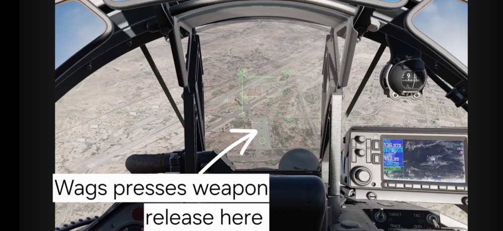 If we pay attention to Wags tutorial at 20:19 (20 min 19 sec) we can hear him press the pickle button on his joystick (weapon release) but he seem to aim with the line not the circle. So perhaps it worth trying to aim above the circkle, try giving it a shot. Im away from home so I can't try it myself. Wags is aiming for the middle truck (center target) at the runway, 20:19 timestamp.