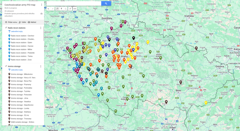 1. Hey, so this is work in progressnull. Map of all points of interest in Czechoslovakia for Phase 3. SAM sites, army HQs, Radar stations, Recon Stations, etc. Some POIs have historic pictures of the sites PS: It would be really cool if we had more of Germany - Czechoslovakia border, there were daily incidents, mostly helicopters. https://www.google.com/maps/d/viewer?mid=1rjchW0foDuvc8evbCmMCEtY60xwlJlw&ll=49.80965116878947%2C14.9276151&z=7