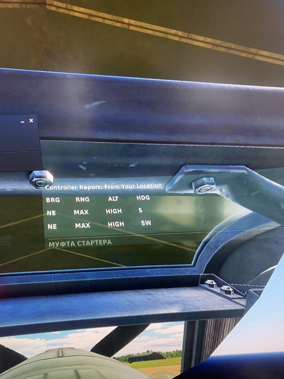 Здравствуйте , подскажите новичку . В режиме сетевой игры ( на поршнях) в полёте появляется такая табличка , если я правильно понимаю так как английский я не знаю , эта табличка говорит что в районе обнаружен вражеский самолёт и координаты куда приблизительно нужно смотреть для обнаружения . Возможно я ошибаюсь помогите разобраться . Фото прилагаю