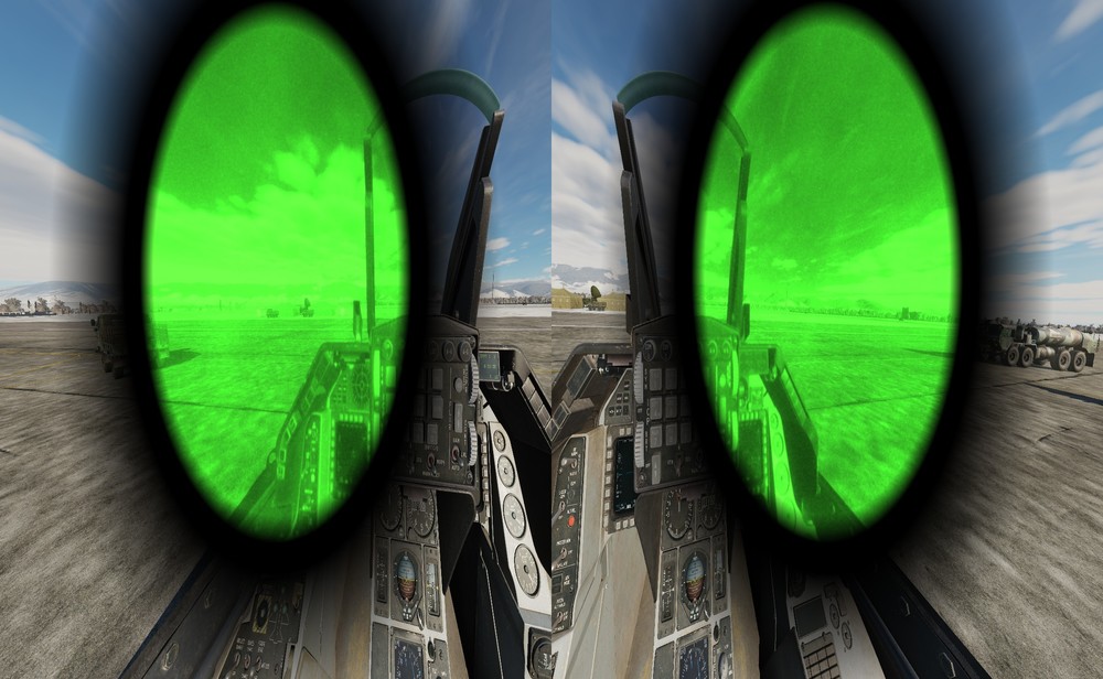 Hey guys, Very new to vr here. I first tried a pimax 5k super which rendered NVGs as just a green layer all over the screens (not realistic but preferable for me for practicality). I very quickly returned that and got an 8k plus for better clarity but now my nvgs, while rendered more realistically, don't feel like they align with the centre of my pupils. the attached image is looking straight ahead in the cockpit. It makes it very hard to see stuff in the dead centre of the screen/hmd due to small binocular overlap, and I find myself having to look slightly offset to use one eye to see a particular point on the screen. My ipd and other settings all work perfectly for me and this is the only issue i seem to be having atm. Any ideas? If not it'd be great if this could be an adjustable parameter for vr, or at least a pimax checkbox in the settings. Or even a "simplified" all screen rendering like I was getting on the 5k would be preferable. to me
