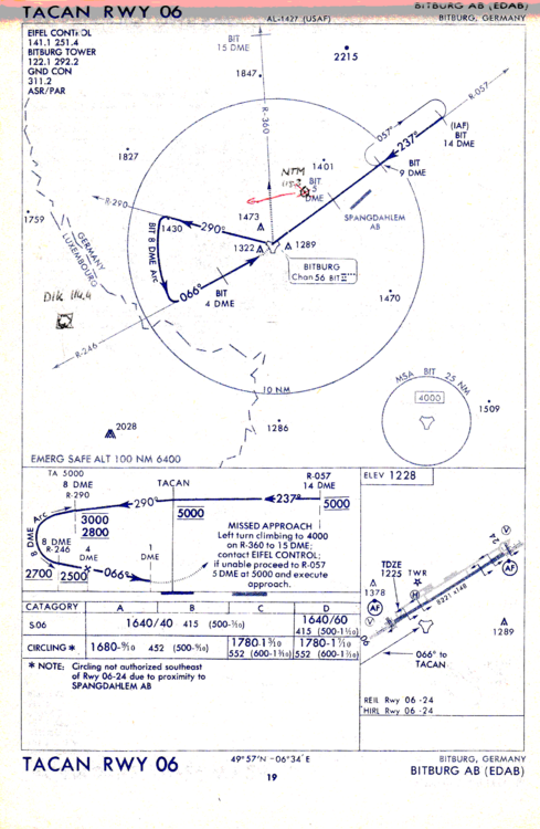 I have renamed the files so they should come up un some sort of order on kneeboard forward/back. Also added all of the TACAN ILS approach diagrams. I did not do any of the departure diagrams - but they do exist (around 60). I have included all of the maps that have come up as part of this thread. I'm still looking for Volumes 1 & 2 of the DOD ENAME FLIP - doesn't look like its online anywhere, although I have yet to search the wayback machine data posted earlier. Data on the RAF bases Gutersloh etc would be good. The zip file attached is currently the most complete and supersedes all of the others. Please let me know if you spot any errors - I've not yet tested it Cheers GERMANY MAP Kneeboard v1.1.zip