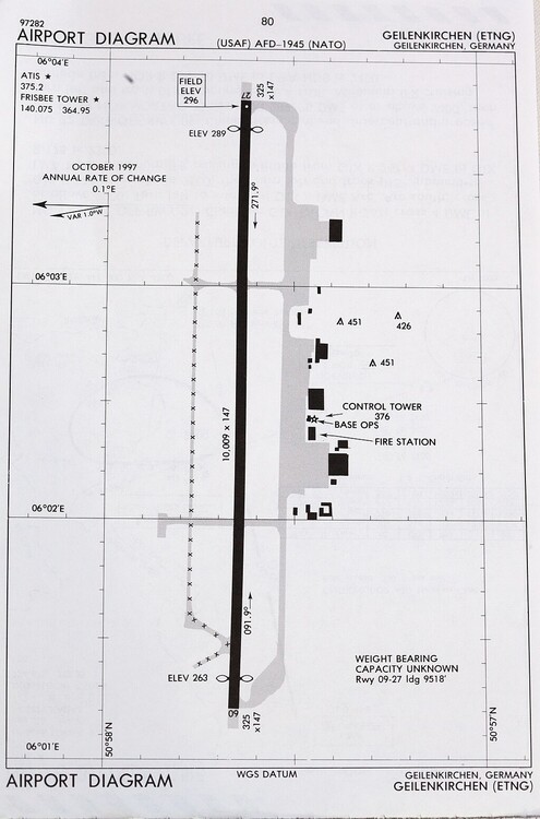 The complete DOD Europe (Vol2) FLIP is available at: https://commons.wikimedia.org/w/index.php?search=File%3AHigh+and+Low+Altitude+ENAME+Terminal+Europe+Vol+3&title=Special%3AMediaSearch&type=image We will need Vol 1 & 3 for the whole of Germany and I've been unable to find them (so far) In the meantime here's some Airfield charts from the site. I will zip them and post to files I have not had a chance to see which of these are on the current/final map or to sort out the approach/departure /enroutes but its a start. Note: there are no copyright or attribution issues. I see that hard copies of VOL 1 & 3 are for sale on eBay for EUR49 each, maybe we could get together to split the cost/effort