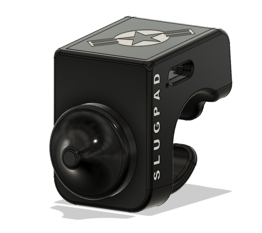 By up and down, I mean the up and down of the Slugmouse. Slugpad is a game controller rather than a mouse emulator. It's essentially a miniature gamepad hat switch worn on your index fingers. Here's a quick and dirty demo video using a development model of the Slugpad. Like the Slugmouse, it is a Bluetooth device with the same functionality as the Slugmouse but appears to Windows as a game controller rather than a mouse. This allows it to be seen by applications that do not support mice, e.g. open kneeboard. IMG_8621.MOV