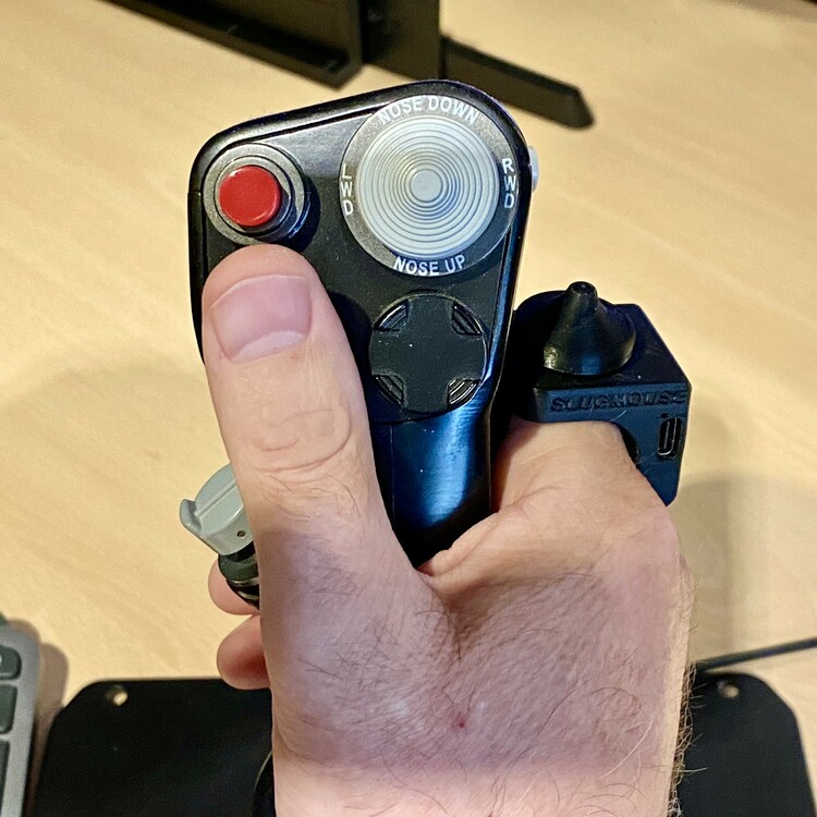Let’s be fair about this. Rafgaj made it clear in his advertisement that it was fixed sized at 21.5mm as he made it only for his fingers. That’s one reason why completely redeveloped the CAD from scratch so I could offer a made to measure service. Try some hot melt glue. It will last longer. This is just how DCS works. If you add another game controller, it will appear in the settings. It’s the same if you add another joystick or throttle. I don’t think this is an issue with your units. You are using HTCC in VR Controller mode and the rings are mouse emulators. Who knows how DCS behaves with VR controllers pointing at buttons and then a mouse click happens. I don’t see this when HTC is in tablet mode.