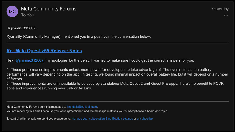 Exactly. I posed the question to the Meta team whether the performance increase is purely for standalone or would be of benefit to PCVR. No reply of course. It may well reduce battery performance so running over AirLink or Link (if port unable to supply enough power) may result in less flight time. I don't think the users will have the ability to de-clock the headset back to the clock speeds they are running at now. We shall see.