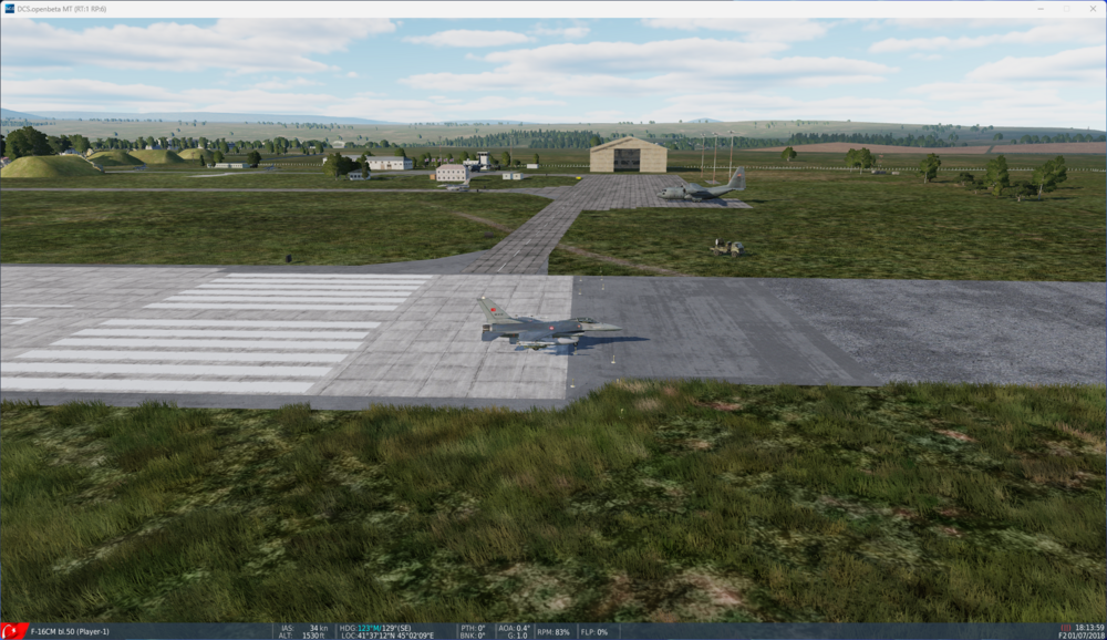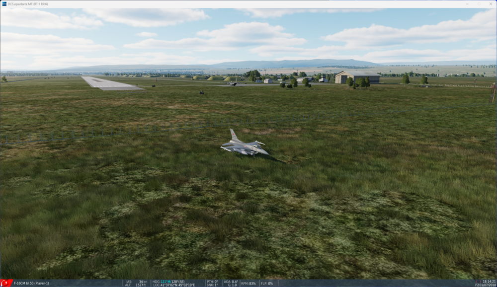 The first track is ready. This shows the AI pilot taxiing straight off the end of the runway into the sunset. You could also use it as an example of the AI pilot not holding the flare on touchdown to bleed speed yet being able to slow down rapidly. It wasn't my best landing either This was flown from the Caucus Takeoff mission. In the pictures below I have exited the runway onto the taxiway. The wingman decided to go for a stroll in the park. null null wing_man_taxi_off_end_of_runway.trk