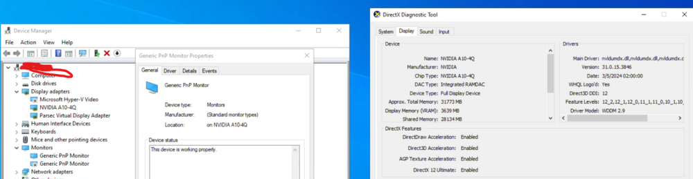 Is this helpful, coming back to the ModelViewer2.exe? The modelviewer opens but with these errors in the log file, so my new question is this perhaps due to the need to install a special monitor adapter? === Log opened UTC 2024-09-16 07:52:47 2024-09-16 07:52:47.115 INFO EDCORE (Main): system affinity mask: 111111 2024-09-16 07:52:47.115 INFO EDCORE (Main): process affinity mask: 111111 2024-09-16 07:52:47.116 WARNING EDCORE (Main): hypervisor is active 2024-09-16 07:52:47.116 INFO EDCORE (Main): CPU: AMD EPYC 74F3 24-Core Processor [1x L3 caches] 2024-09-16 07:52:47.116 INFO EDCORE (Main): CPU has uniform cache size 32 MB (per cache) 2024-09-16 07:52:47.116 INFO EDCORE (Main): all CPU cores have the same efficiency class 0 2024-09-16 07:52:47.116 INFO EDCORE (Main): all CPU cores have the same performance class 0 2024-09-16 07:52:47.116 INFO EDCORE (Main): common cores: {4, 5} 2024-09-16 07:52:47.116 INFO EDCORE (Main): render cores: {0, 1, 2, 3} 2024-09-16 07:52:47.116 INFO EDCORE (Main): IO cores: {} 2024-09-16 07:52:49.181 INFO EDCORE (Main): pause10: 0.017504 us (std dev: 0.013884) 2024-09-16 07:52:49.181 INFO EDCORE (Main): pause10: 514 cycles (std dev: 538.7) 2024-09-16 07:52:49.182 INFO EDCORE (Main): Created boot pool: n:6 2024-09-16 07:52:49.358 INFO GRAPHICSVISTA (Main): renderer: 'dx11backend.dll' 2024-09-16 07:52:49.387 INFO DX11BACKEND (Main): DX11Renderer initialization (w:640 h:480 fullscrn:0 vsync:0 adapter:0 monitor:0 shaderErrors:1) 2024-09-16 07:52:49.505 INFO DX11BACKEND (Main): Driver Concurrent Creates - 1 2024-09-16 07:52:49.505 INFO DX11BACKEND (Main): Driver Command Lists - 1 2024-09-16 07:52:49.514 INFO DX11BACKEND (Main): NVIDIA API init OK 2024-09-16 07:52:49.515 INFO DX11BACKEND (Main): NVIDIA Display Driver Version 53846.r538_27 2024-09-16 07:52:49.515 INFO DX11BACKEND (Main): GPU count:1 2024-09-16 07:52:49.518 ERROR EDCORE (Main): No suitable driver found to mount bazar/shaders/metashaders 2024-09-16 07:52:49.556 INFO DX11BACKEND (Main): commonPool: 48-128, cbPool: 4-14 2024-09-16 07:52:49.556 INFO DX11BACKEND (Main): samplerPool: 5-16 2024-09-16 07:52:50.207 INFO DX11BACKEND (Main): NVIDIA DLSS Minimum driver version was reported as : 445.0 2024-09-16 07:52:50.208 INFO METASHADER (Main): Init filesystem: E 2024-09-16 07:52:50.214 INFO DX11BACKEND (Main): DX11ShaderBinaries::loadCache bazar/shaders/fxo/fxo 2024-09-16 07:52:50.263 ERROR EDCORE (Main): Can't open file: /shaders/metashaders/grass/grass.fx. Other apps can initialize the direct x drivers? And I did install them from the dist folder in DCS.