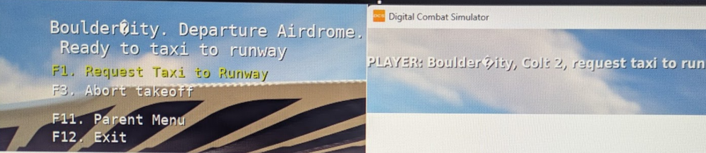 I had noticed this before and ignored it, however since recently starting to use OpenKneeboard it is causing problems, as when that app reads the data from the game to show the radio log, it obviously gets passed that data, and as soon as I get a message from Boulder City the 3rd party apps crash, and their crash logs show they got unreadable data from the game. Took me a while to realise it only happens when I was taking off from Boulder.