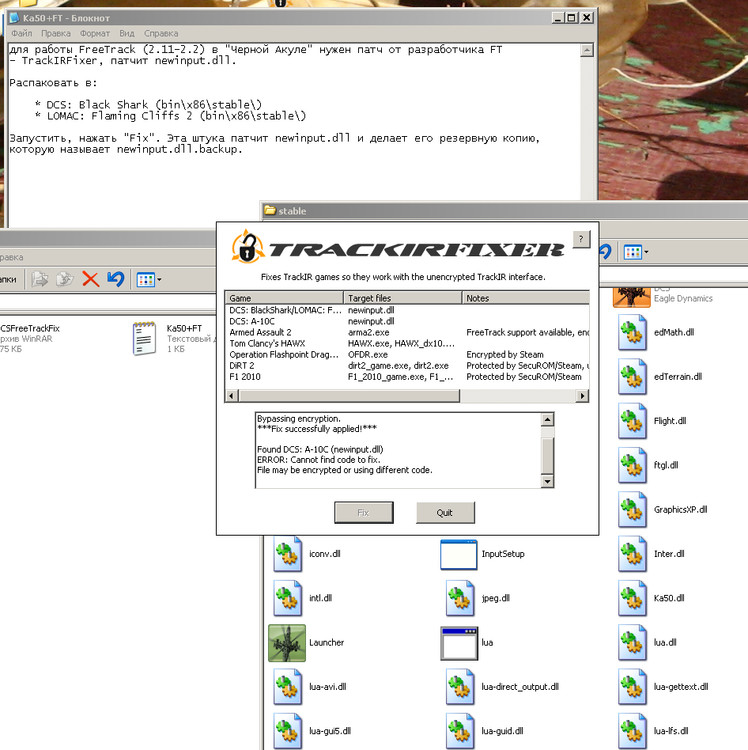 Не получилось Сделал как было написано:* DCS: Black Shark (bin\x86\stable\) С одной поправкой: нет папки х86, stable находится прямо в bin Распаковал фиксер в stable, запустил, выделил Black Shark, нажал fix: Результат на скриншоте.:crash: Где собака порылась?