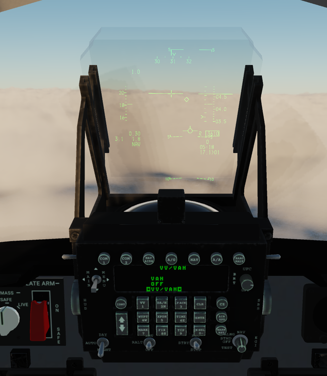 Just to document the mod, the U key (cage/uncage) doesn't change the HUD.... but there is an entry in the UFPC menu that does: choose Misc (0), then Drift (6); there are two values: NORMAL: in the presence of crosswinds the FPM, waypoint mark (circle) and pitch ladder are rendered off-centre (the crosshairs, waypoint hbearing caret and aircraft heading mark in the bearing tape stay centered) DRIFT C/O: the FPM and ladder are centered even in the presence of crosswinds Version 0.3.0b