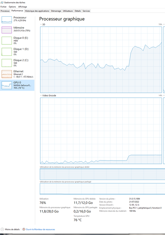 Hi all, Using openxr for month now , I have some issues specialy in some situations. For example, on marianas maps, it's smooth. And at a time, big framedrops happens (10fps) with no reason and stay like this for minutes. Then come back very smooth for a few time. I checked performance tab : CPU at 30%, GPU at 70%, SSD 0%, ram 24/32go when it becomes lagguy. What si the graphic processor memory? Here 11,8/28go? => Is my issue a known issue? Also, something weird for me : if I don't run reprojection, I have arround 70/75 fps but with a stutering absolutly horrible. I wonder how you can play without reprojection. Is it because of my eyes? My rig : HP G2, 3080TI, I7 8700K, 32GO, SSD. If you are like me : try to activate reprojection in openxr options. And see if it s better. -
