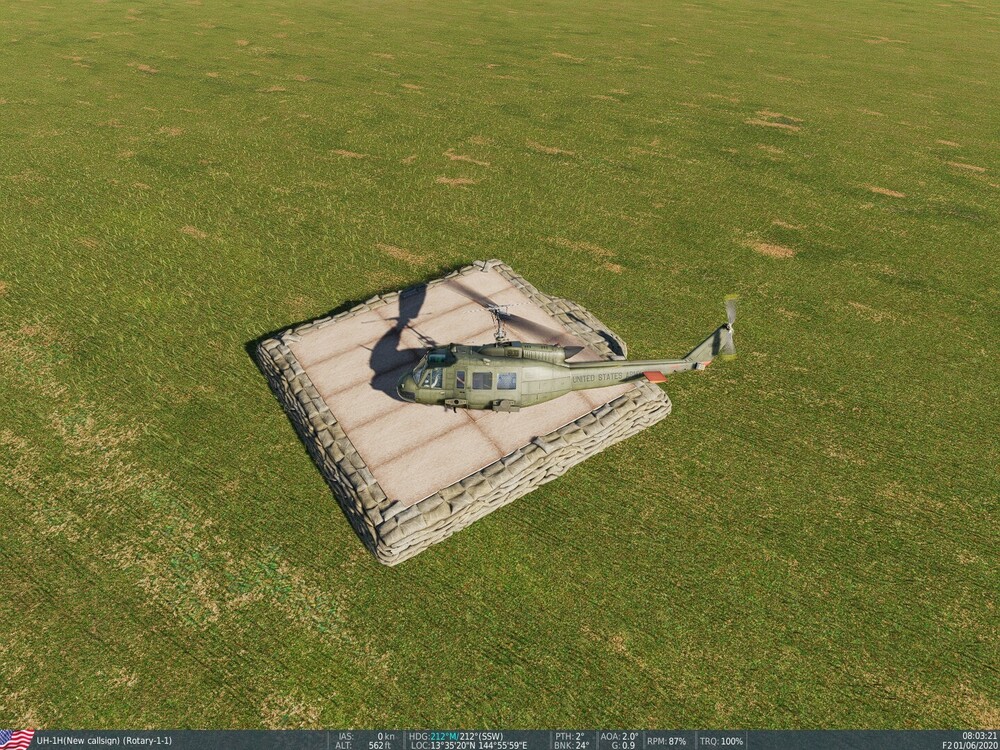 Actually scratch that. It aint fine, when you land on one side of the pad, it will destruct your helicopter. I've attached the test mission. Reporting this as a bug with the object test sandbag UH1.miz -
