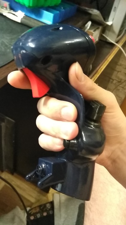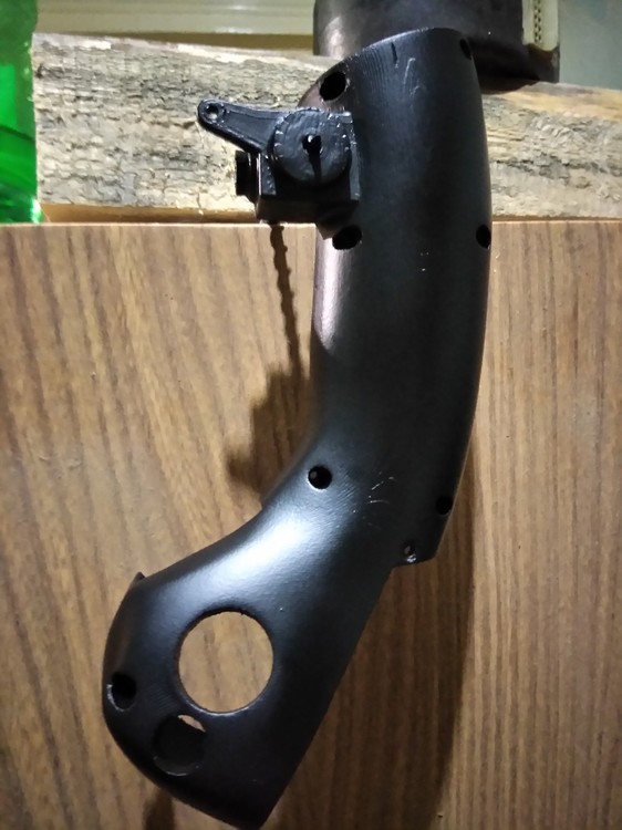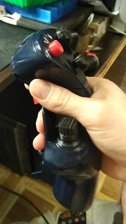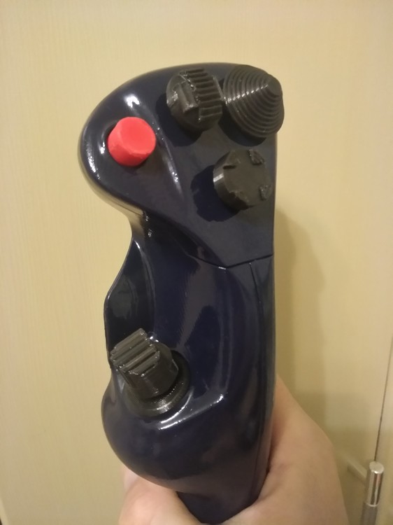 3. Всем привет! я новичок на этом форуме но решил и сюда выложить фотки по моему опыту создания ручки. Началось все с проектирования ручки, чертежей особо найти не получилось, фотки были тоже не очень. Поэтому параметрическое моделирование во fusion 360 не получилось. Пришлось вспоминать что такое полигональное моделирование в 3вы MAX и по 2-3 фото выставлять полигональную сетку по вершинам)) муторный процесс скажу вам. Затем готовая модель отправилось во Fusion 360 где было конвертирована в тело. через месяц мучений получилось это Затем пошла в ход 3д печать, печатал пластиком ПЕТГ соплом 0.4 слоем 0.28. Было 2 варианта с Мини Стиком и без него. Остановился на варианте без.