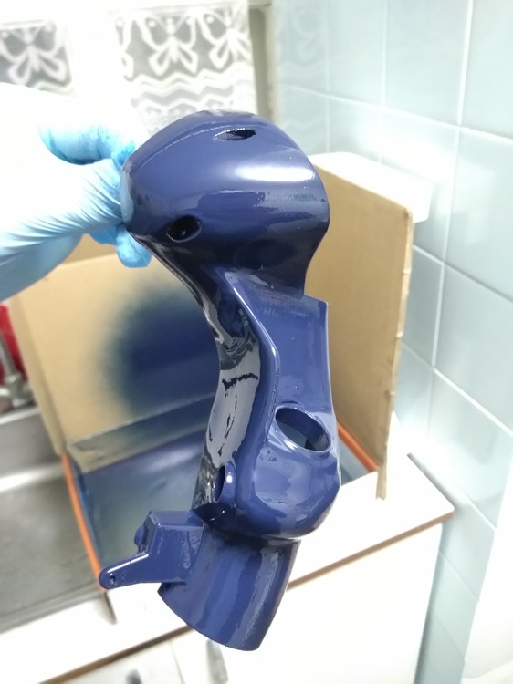 2. Затем пошла в ход шлифовка и грунтовка. Так как я печатал с заполнение 100% а толщина стенок 3.5-4 мм было не страшно ее шкурить даже крупной наждачкой. Покрыл акриловым грунтом филером в 3 слоя Затем покраска алкидной краской в 2 слоя После высыхания и сборки