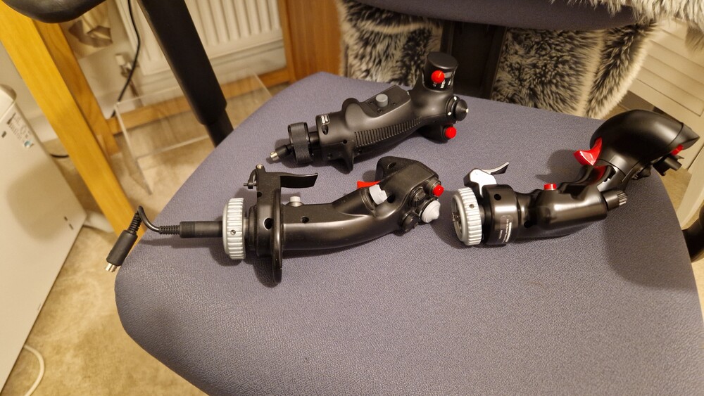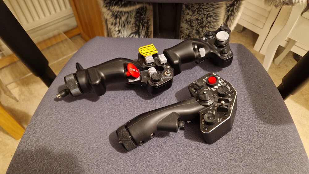 Just getting an idea at the moment so open to offers at the moment Collection only from West Cornwall UK. Bank transfer on Collection. I have for sale all boxed with instructions etc HOTAS Warthog (throttle and Stick) HOTAS Warthog base, needs to be repaired as a wire inside snapped) Winwing Orion 2 Throttle with F15-E Grips Virpil CM3 base + Virpil 20cm curved extension Virpil VFX Grip TM F-18 Grip Virpil Rotor Base Plus with counter balance kit Virpil Hawk60 Grip Virpil Apache Grip There's probably other bits too, i'll update this is I think of anything. At the moment I'm getting a feel for if anyone is interested in all this so open the offers. Can either reply here or send me a PM Edit A pair of Total Control MPD'S plus the desk mounts for both Short 3D printed curved extension for the HOTAS Warthog 10cm Aluminium extension that works with either base A Virpil chair mount for the Collective base and the extension plate too. I'm looking for around the £1400 mark and this is all being sold as a bundle rather than splitting it. If you're in Cornwall/West Devon I can probably arrange to deliver it to you myself but any further would me you collecting from close to Falmouth.