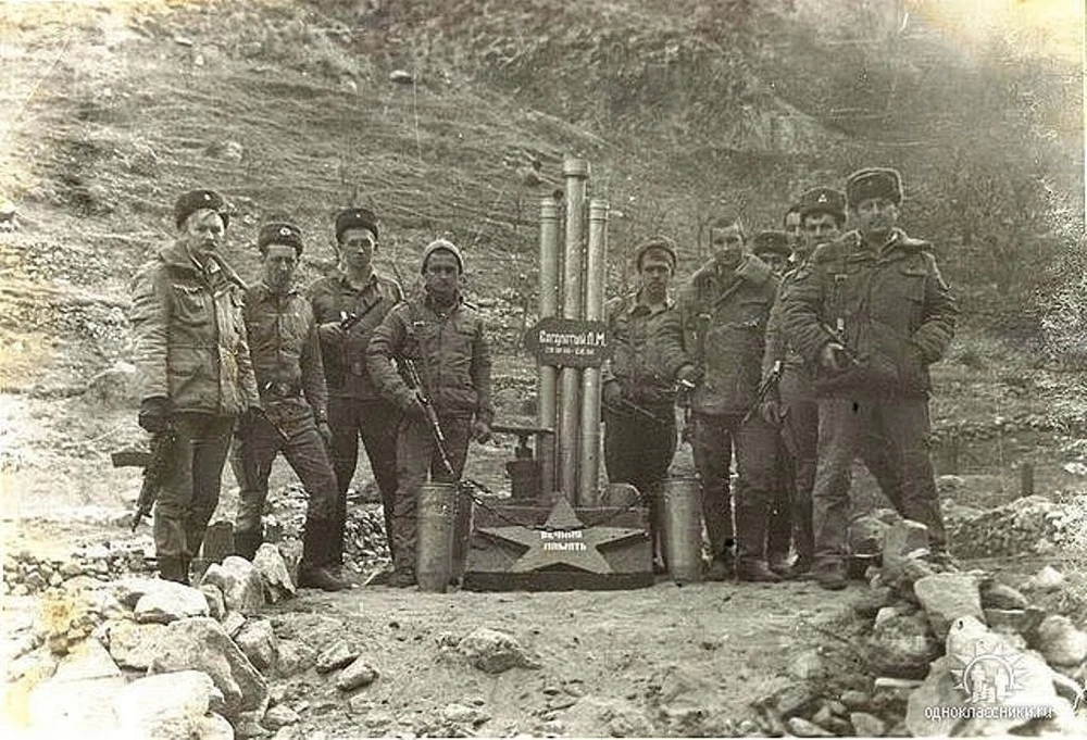 Soldiers and officers of the 276th Pipeline Brigade at the cenotaph in memory of a fallen comrade. The brigade served along the Termez-Kabul highway and provided fuel delivery to almost all military units in eastern Afghanistan. Permanent service along this road, one of the main targets for ambushes and sabotage by the mujahideen, was tense and no less dangerous than raid operations and service at distant outposts. -