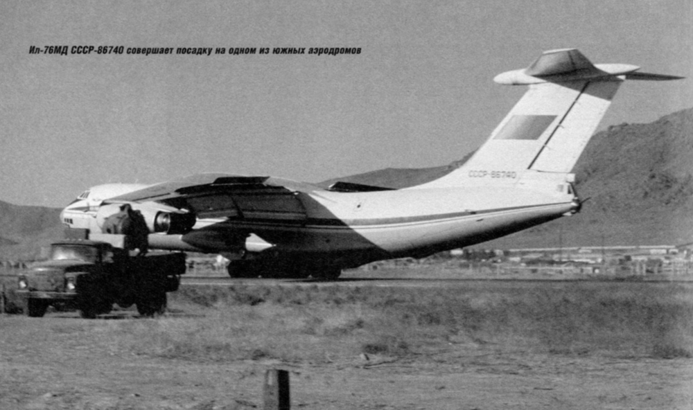 The Afghan epic of the Il-76 IL-76MD USSR-86740 lands at one of the southern airfields The Il-76 was one of the main "characters" in the introduction of troops into Afghanistan. Full-scale preparations for the upcoming operation began in mid-December. The main group of the 40th Army being formed was staffed by the Turkestan and Central Asian military districts, but the paratroopers were to carry out the first, most important, throw to occupy the most important objects in Kabul and other centers of the country. During the introduction of troops on December 25-27, 1979, VTA aircraft transferred the advanced forces of the 103rd Guards Airborne Division and the 345th Separate Parachute Regiment to Afghan airfields. The first plane with paratroopers took off on December 25 at 15:00 Moscow time (18:00 local time, when it was already dark). At 16:15 the aircraft landed in Kabul, and the last scheduled flight was completed at 14:30 on December 27, although individual flights continued to be carried out later, this time with the purpose of supplying the delivered troops and evacuating the injured. During the 47-hour operation, transport aircraft carried out 343 flights, including 76 Il-76s. In less than two days, 770 people, 894 units of equipment and 1,062 tons of various cargo were delivered to Kabul and Bagram. The tasks were completed with minimal losses. And yet, the transport operation was not without casualties - in its very first hours, an Il-76 from the 128th VTAP was lost in a crash. The loss occurred less than a month after the first Vitebsk crash involving an aircraft of this type, but this time in combat conditions, which is why it was initially considered likely that it was hit by enemy fire. On December 25, 1979, Captain V.V. Golovchin's plane was flying with vehicles and 34 paratroopers on board in another group of transport aircraft. At night and in difficult weather conditions, the plane crashed into a mountain near the Salang Pass on the approach to Kabul. Parts of the plane and flight recorders ended up in deep snow on both sides of the mountain range, and it was impossible to evacuate them from there. However, with the introduction of troops, the long and difficult work of the Military Transport Aviation in Afghanistan was only just beginning. In the winter of 1980, the 40th Army continued to be staffed with newly arriving units and provided with everything they needed - from equipment and ammunition to fuel and food. In addition, the winter that year was frosty and snowy, the roads through the passes became impassable and were constantly closed due to snowfalls and icing. This meant an even greater burden on the transporters who carried everything, since the command had set the task - the army's vital functions should be fully provided for by its own forces, without any recourse to local resources (and there was nothing to take there, even the Afghan army itself was increasingly fed by Soviet aid). The work during this period was carried out by a group of five or six Il-76s, which received cargo at the airfields of the TurkVO and delivered it to Afghanistan (and, of course, by local An-12 and An-26 from the Fergana and Tashkent air regiments). Of the Afghan airfields, of which there were 17 in the country, the "Seventy-sixths" landed only in Kabul, Shindand and Kandahar, which had normal "concrete" of an acceptable class and, what is no less important, a favorable approach scheme. Other airfields were mostly dirt or gravel, barely allowing for the work of lighter transport aircraft (An-12 and An-26), and the Il-76 base in Bagram was not used due to the proximity of mountains, which complicated the landing maneuver for a heavy aircraft, and the "Green Zone" approaching the airfield, from where shelling was frequent. During the entire Afghan campaign, Il-76 landings in Bagram could be counted on the fingers of one hand, and usually for some extraordinary reason. Usually, cargo for units stationed in Bagram, where the garrison was larger than in Kabul, was delivered to Kabul, and from there it was transferred to its destination by convoys or planes of the local 50th Air Regiment. When the flow of cargo increased, the Tashkent transport hub became like a "bottleneck". The capacity was limited by the lack of parking places, difficulties with refueling and preparing numerous aircraft. To relieve it, other border airfields of the TurkVO were used, mainly Fergana, Mary, Karshi and Kokayty. The last airfield, located near a small village on the edge of the desert, was the closest to the Afghan border, located some 30 km from it. In accordance with the increase in the scale of military operations, the workload of the military transport aviation increased from year to year. With the participation of the crews of the 196th regiment alone, 430 aircraft sorties were carried out in Afghanistan in 1983, transporting 3,496 tons of cargo and 16,238 people. The following year, 1984, 534 aircraft sorties were carried out, delivering 4,690 tons of cargo and 11,589 people. This year, the fighting army undertook a number of major operations aimed at defeating the “counter-revolutionary forces” - 51 of them were carried out in the first half of the year alone, including the famous Panjshir operation to eliminate Ahmad Shah Massoud’s formations and “strengthen the people’s authorities" on the ground. Since the Il-76 had a much better speed, altitude and rate of climb, this made it a safer means of transport, and the presence of a sealed and heated cargo cabin favorably distinguished it from the Spartan conditions of the An-12. The final argument in favor of the Il-76 was the modifications carried out with the installation of jamming blocks and an inert gas system, which significantly reduced the vulnerability of the aircraft. Since 1986, taking into account the greater safety and security provided by the Il-76, all air transportation of personnel to the DRA and home began to be carried out