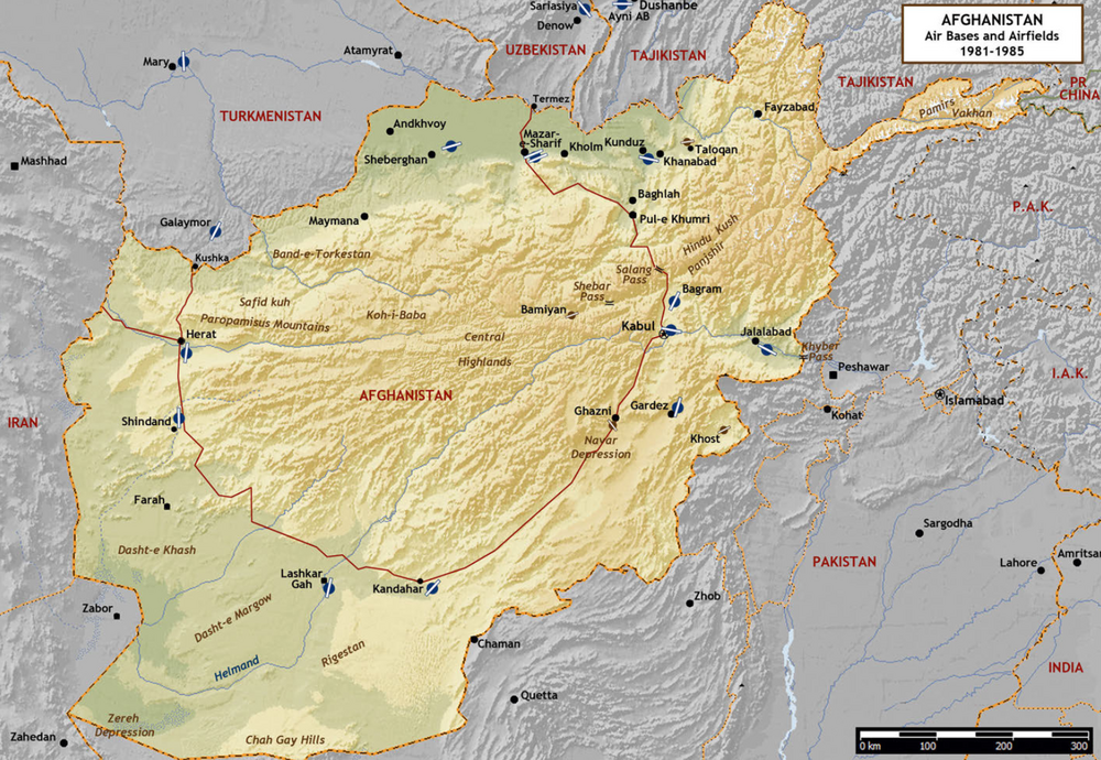 A map of Afghanistan with all air bases in service as of the 1980s with Mary and Termez (Kokaydi) airbases clearly shown. (Map by Tom Cooper) Source: Rooks in Afghanistan by Andrey Korotkov -