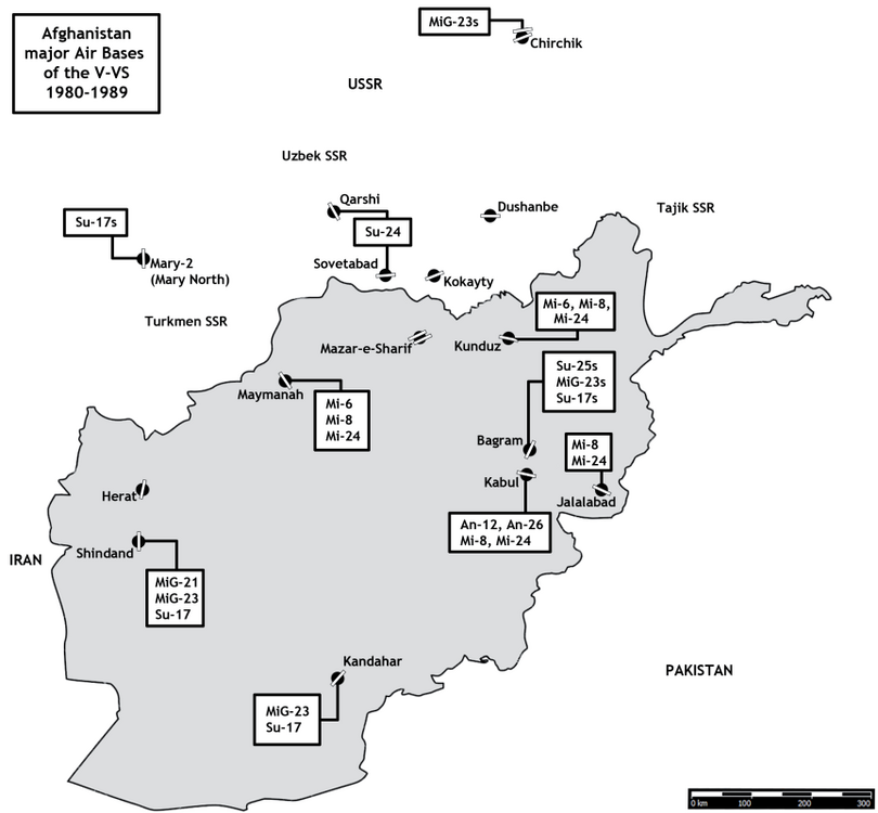 Major airbases for the Soviet VVS in Afghanistan, Turkmenistan and Uzbekistan. Source: The Soviet War in Afghanistan 1979-1989 by Ilya Milyukov Map by Tom Cooper -