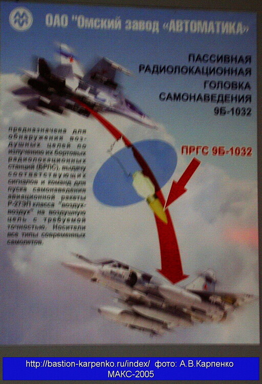 From the book "Soviet aviation missiles - Air to Air" information about the R-27 missile family. P-27 (K-27, изделие 470) Ракета имеет рулевые поверхности необычной формы «бабочка», сужающиеся к основанию. Они исключили возникновение реверса рулей, присущего ракетам схемы «утка», использующим рулевые поверхности как для управления по основным каналам, так и для стабилизации по крену и сделали возможным перехват энергично маневрирующих и высотных целей по более сложным и оптимальным траекториям. Впервые в отечественных ракетах этого класса для повышения мощности и точности отработки силовых приводов использованы гидравлические рулевые машинки с питанием от бортовой насосной станции. Помимо ракет Р-27Р с ГСН 9Б 1101К (изделие 470-1) и Р-27Т с ТГСН (изделие 470-3), на вооружение поступили их «энергетические» варианты с продолжительным временем работы двигателя Р-27ЭР (изделие 470-1Э) и Р-27ЭТ (изделие 470-3Э), а также специальная Р-27П с пассивной противорадиолокационной ГСН, целью которой являются АВАКС и самолеты РЭБ - источники мощного излучения. Р-27ЭР и ЭТ, помимо большей дальности пуска, обеспечили и возросшую с 25 до 27 км высотность поражения. При их испытаниях была получена максимальная дальность полета до 98 км. Пуск Р-27 возможен по целям со скоростями до 3500 км/ч, маневрирующим с перегрузкой 8g на высотах от 20 м с максимальным превышением или принижением относительно истребителя до 10 км. Ракеты оснащены стержневой БЧ массой 39 кг (в т.ч. 15 кг BB). Инерциальная-полуактивная ГСН P-27P разработки МНИИ «Агат» при массе 33,5 кг обладает диапазоном углов целеуказания + 50°, тепловая ГСН Р-27Т позволяет выполнять всеракурсную атаку в поле углов целеуказания + 55°. Пуск ракеты, обладающей мощной двигательной установкой, может привести к повреждению самолета-носителя или помпажу его двигателя. Это потребовало создания и для P-27 (помимо обычного пускового устройства АПУ-470) авиационной катапультой установки АКУ-470, «выстреливающей» ракету на безопасное расстояние при пуске. В целом простая конструкция Р-27, повышающая надежность, сочетается с высоким совершенством всех ее систем. Уровень оборудования ракеты характеризуется уже тем, что в процессе целеуказания ее ГСН получает цифровые команды от бортового комплекса истребителя, оперирующего 32-значными числами. Успех современного скоротечного боя решают доли секунды, и даже малейшая задержка наведения и пуска может сорвать атаку. Поэтому в ракетах нового поколения может применяться целеуказание от бортовых радиолокационных, тепло пеленгационных и оптикоэлектронных прицелов истребителя от нашлемной системы летчика (направление на цель он обозначает поворотом головы), или за самостоятельный поиск и захват цели ГСН ракеты. После получения целеуказания Р-27Р готова к пуску через 1 - 1,5 с. В двухэтапной схеме наведения Р-27Р (ЭР) при пуске на большую дальность инерциальный режим полета ракеты, ориентированный на «математическую» цель, сопровождается коррекцией ее положения по радиолинии с РЛС носителя, позволяя парировать маневры и уклонение противника. Комбинированное наведение появилось «не от хорошей жизни» - имеющаяся элементная база аппаратуры не позволяла достичь гарантированного превосходство по дальности над ракетами вероятного противника, РГСН Р-27 устойчиво захватывала цель только с 25 км, но двухэтапный полет обеспечил максимальную дальность пу