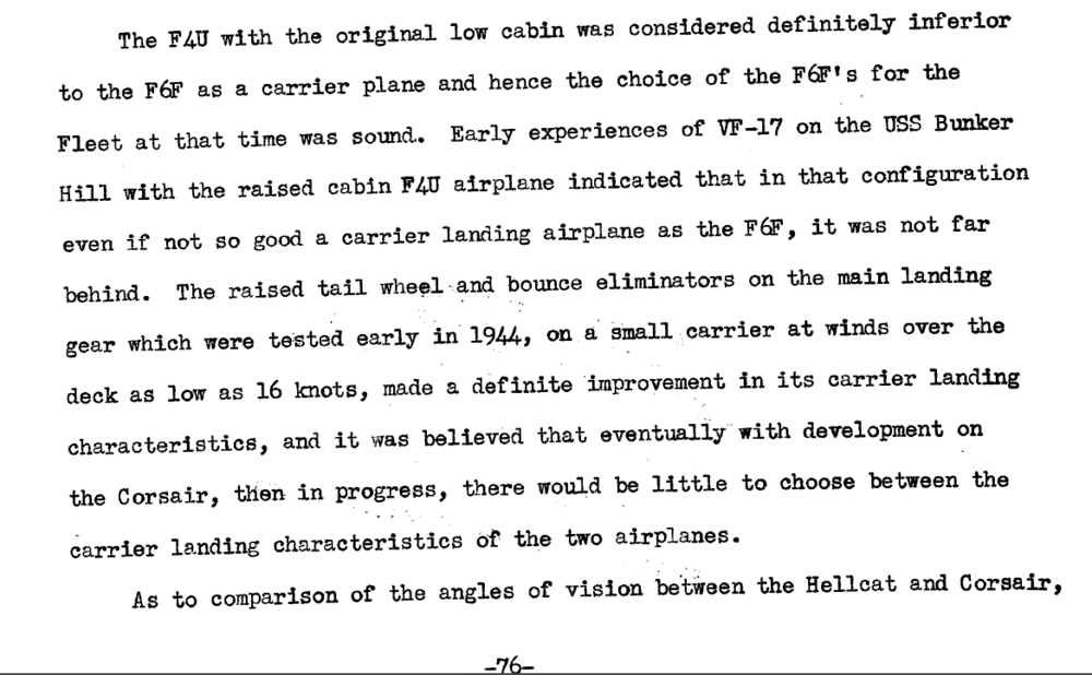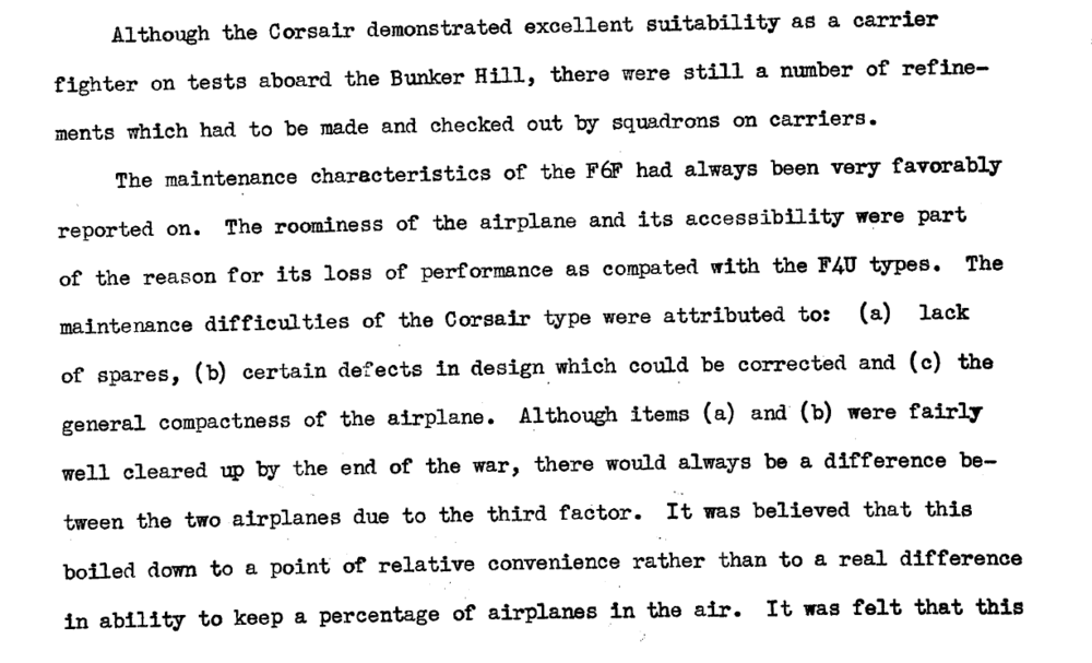 Nice find! There is a lot of mithology about the corsair, like many things with WW2 one can only trust first hand sources instead of the same story copied from one book to the other. After the first year operation with all the modifications made there was no doubt that the corsair was the better carrier aircraft. Let alone in your document dated in 1945.
