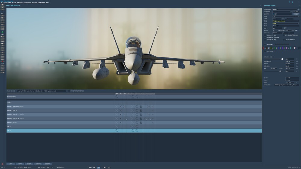 1. Strange I did this on a fresh install and followed the install guide to a T and mine isn't. Could it be a bad download as the links are now down? Mine says it was version 2.4.2. I also noted the high vis tank pod option wont display. They display correctly like in your photos but once you click to change anything it breaks. I'll try to delete it and try again after redownloading from their discord. I have no other mods installed this is a new DCS install on a new drive on a new PC build so the only issue I can think of is its a bad download. EDIT: New download and still wont work. Did not have this issue with previous versions prior to doing a clean DCS install. Maybe I'll downgrade back a version. Decided to install SU-30 mod real fast to try and that one had zero issues. EDIT: Think I figured it out. All the Preset Payloads are broken if you use or alter them. Only when going to a new loadout created from scratch will it work.