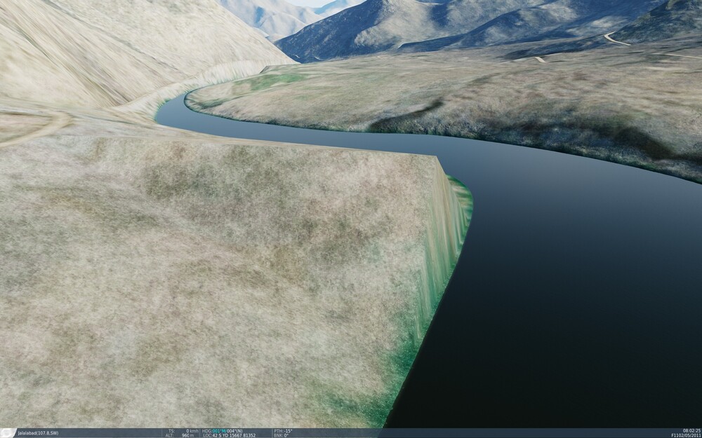 -camera -273.090506 0.429677 -78.004705 -cameradir -0.663498 -0.298678 -0.685976 Weird ground 4 -camera -262.301531 0.138726 -74.342653 -cameradir -0.600542 -0.753062 -0.268787 Road ends? -camera -261.935305 0.187707 -74.136839 -cameradir -0.223655 -0.679126 0.699118 Hard line in landscape bridge behind 'steep' -camera -254.074586 0.145640 -74.442768 -cameradir 0.908163 -0.353695 0.223921 Funny road (and river goes over a hill...;) -camera -254.471228 0.125714 -74.600963 -cameradir 0.890729 -0.435708 0.129464 null