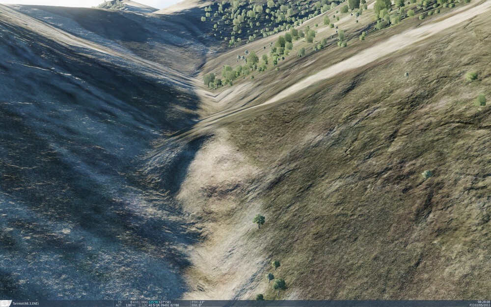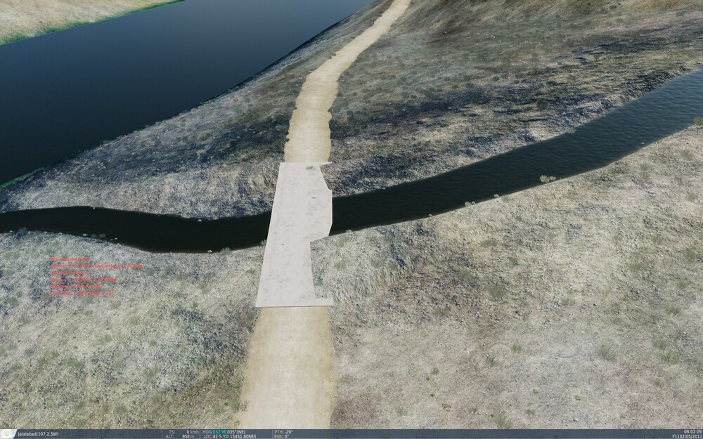 I spended some time on finding terrain anomalies. Clipboard coordinates below, see the pictures for the area's that can be improved. -camera 145.065572 1.348340 454.700014 -cameradir 0.924334 -0.285878 0.252747 -camera 148.762655 0.975504 462.538951 -cameradir 0.372027 -0.356673 -0.856960 -camera 149.446214 0.927744 463.292194 -cameradir 0.666210 -0.233110 -0.708395 -camera 151.291930 0.960401 463.586448 -cameradir 0.963591 -0.260054 0.06216 -camera 155.126546 0.979076 462.557172 -cameradir 0.958822 -0.177759 0.221499 -camera 155.976947 0.987269 462.827691 -cameradir 0.993673 -0.105647 -0.038126 -camera 171.092913 1.092350 476.574576 -cameradir 0.936195 -0.351293 0.011489 -camera 172.748693 1.109799 476.862673 -cameradir 0.924029 -0.377185 0.062462 -camera 135.678202 0.892286 449.983885 -cameradir 0.518417 -0.288633 0.804944 -camera 135.245929 0.874092 449.857992 -cameradir -0.853600 -0.336890 0.397332 -camera 126.931337 0.909394 444.519802 -cameradir -0.640739 -0.272068 -0.717936 Bridge/tarmac -camera 150.606044 0.958134 463.410381 -cameradir 0.716442 -0.486880 0.499659