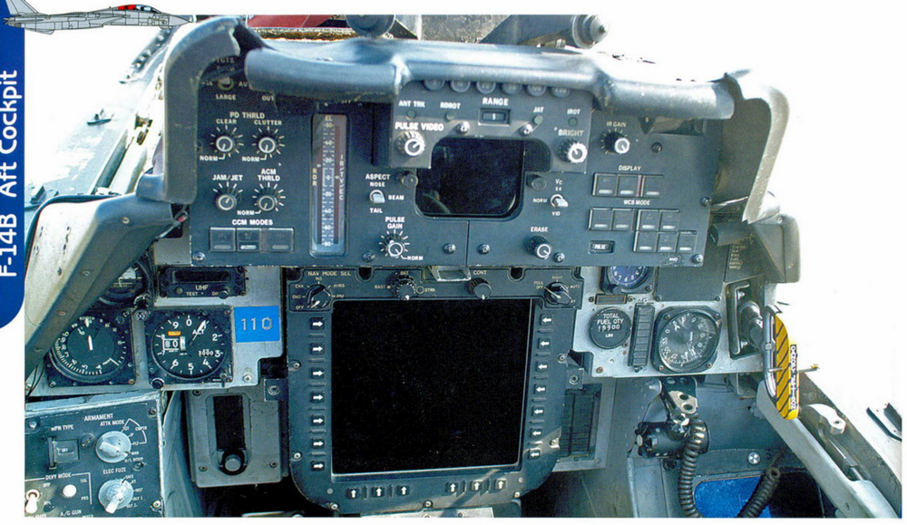 F-14A RIO F-14B RIO F-14A front cockpit full view at Calverton - Cradle of Aviation Museum - New York Heritage Digital Collections F-14A front cockpit center console view at Calverton - Cradle of Aviation Museum - New York Heritage Digital Collections Danny Coremans Uncovering the Grumman F-14ABD Tomcat F-14 A B Tomcat In Detail Scale by Bert Kinjey (Vol.9) null Lock on no.18 by Willy Peters F-14B null From IRIAF's video. Pilot seat AAU-19A Partial 9 is visible above dash. nullnull Partial 1 is visible below dsh. I could not find any picture/video that shows 0 for 10,000ft scale.