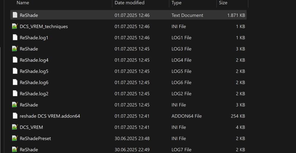DCS_VREM_techniques.iniReShade.logReShade.log1 i think even with none selected do the same if box is ticked for Activate reshade Techniques btw , with v 8.1 load in to the menu, but there is no effect for reshade Techniques -