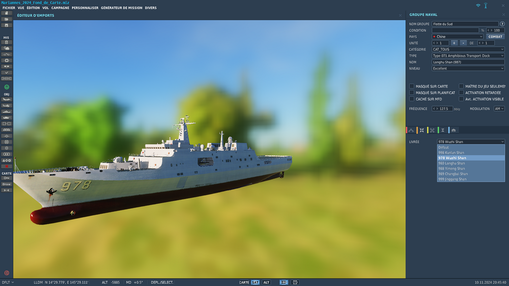 Hello, while searching on the forum I did not find any topic about the subject. A minor corection, nothing serious. Regarding the ship Type 071 of China, on the skin (registration) for the "Wuzhi Shan" it is registered number 978 in DCS. In contrast, IRL it would seem that the "Wuzhi Shan" is number 987 and not 978. I attach a DCS image in game: nullnull And a video + image of the IRL vessel: https://vpk.name/images/i323568.html Have a good day and thank you for these beautiful toys:)