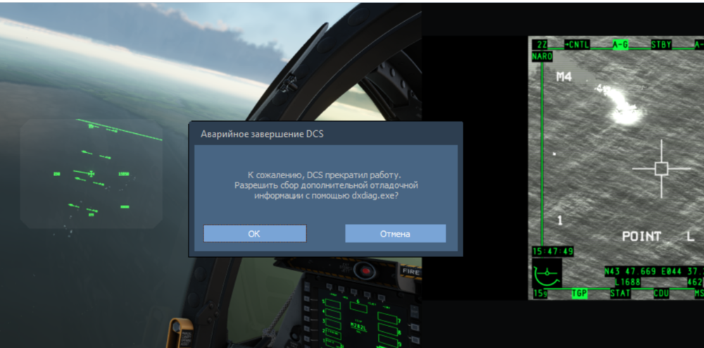 В мануале написано, что на TGP мигает перекрестие, если подходит к пяти градусам затемнения корпуса воздушного судна (недавно нашёл этот момент в мануале), но в DCS ничего не мигает, только буковка M появляется. Правда прочёл я в мануале от первого A-10C, а летаю на втором. Ну и не мигает перекрестие.