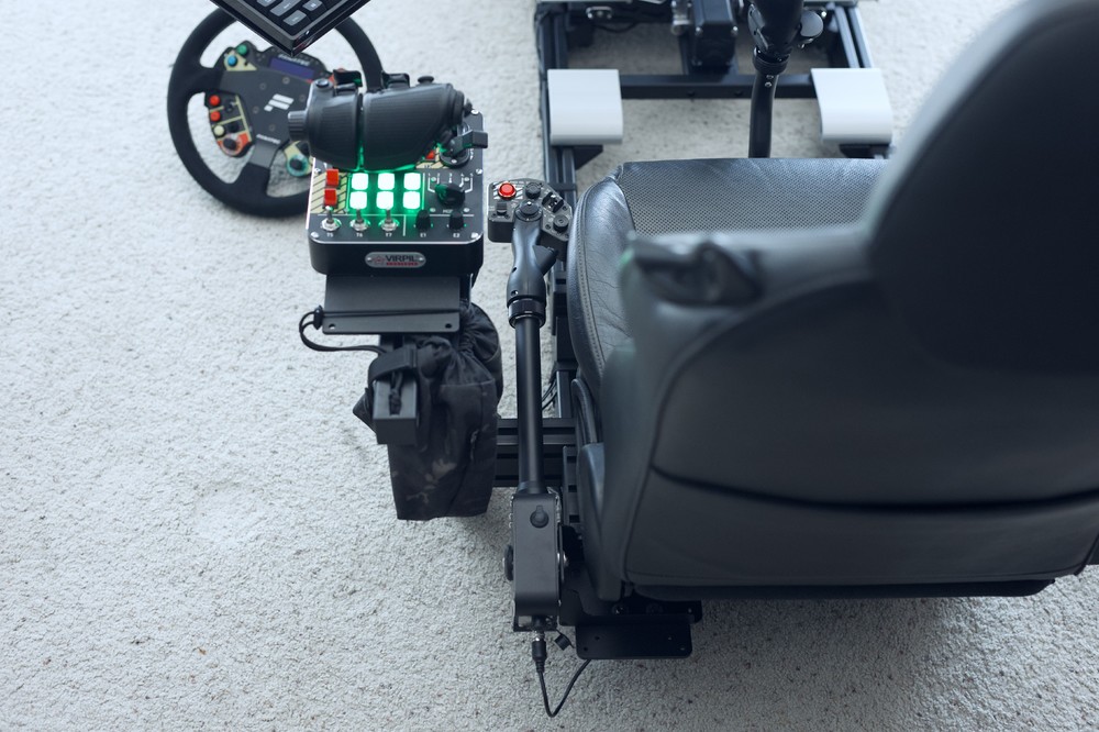 Finally finished transforming my driving sim rig to driving AND flight! Super happy with this setup it took me quite a lot of research and time to get everything just right. I managed to fit almost the entire VIRPIL catalog onto my rig after some very careful planning and measuring. Here is an Imgur post with full details for each photo. As well as more photos of the details: https://imgur.com/a/XefozF9 Here is a list of all the hardware: RIG -SimLab TR1 rig, with additional parts from SimLab and a few custom parts. The rig is only 500mm wide so very easy to put in smaller spaces. A bit wider with the HOTAS stuff mounted of course -OEM Honda S2000 seat (I have a highly modified S2000 that has Recaro seats so used this extra OEM seat. it's a great balance of comfort without getting in the way of flight sim stuff. Not easy to get your hands on so not really recommended unless you already have an extra laying around haha. -SimLab keyboard tray mount -SimLab mouse pad (modified to use countersunk mounting bolts) -SimLab shifter mount w/Fanatec shifter side mount -SimLab extra mounting points (2x) for mounting HOTAS on each side of seat -SimLab VESA mount to mount helicopter collective -SimLab TM Warthog stick and throttle mount, modified to mount VIRPIL hardware -Blue mic arm with Shure MV7X mounted to additional 4040 profile on side mount DRIVING -Fanatec Podium Racing Wheel (DD1 for Playstation/PC) -Fanatec Podium Endurance Module -Fanatec 320mm Alcantara wheel -Fanatec Clubsport shifter, mounted to shifter mount with SimLab Fanatec side mount -Fanatec handbrake mounted to shifter -Fanatec CSL Elite pedals modified with custom Tohatsu 25mm spring FLIGHT -VIRPIL VPC MongoosT-50CM2 Base, universal base mount -VIRPIL VPC WarBRD Base -VIRPIL 200mm flight stick extension -VIRPIL VPC Constellation ALPHA-R grip -VIRPIL VPC MongoosT-50CM3 Throttle -VIRPIL VPC Rotor TCS Base -VIRPIL VPC Hawk-60 Collective Grip -VIRPIL VPC ACE Torq Pedals I have been a VERY long time DCS watcher but finally decided to also become a full DCS enjoyer. Got super excited when they released the Apache. I have started off learning the A-10C II and loving every minute of it. Looking forward to learning to fly all the Warbirds, helicopters, everything. I love always having a new aircraft to learn all the small details it has been an absolute blast. I have been able to experience a lot of really cool flight simulators when I was growing up, even sitting in an F-16 cockpit at Oshcosh when I was 12 years old. My first ever flight sim I ever played was F-22 Lightning II from 1996. And had the chance to experience high end flight simulators at various airshows as I was growing up. But never had the chance to have my own flight sim setup at home until now. So yes I may have went a little overboard but who's gonna stop me? If anyone has any questions happy to go over details. Make sure to checkout the Imgur link it has captions for each photo and way more photos of the details.