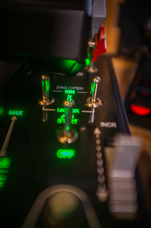 I use the "Eng oper" middle positions to set idle power. Up-hold to ignition/start. (Down to off) And the "INCR/DECR" slider for both throttles. -